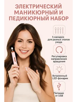 Электрический маникюрный и педикюрный набор с насадками