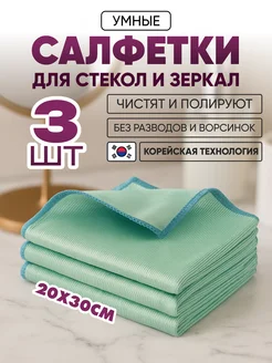 Умная тряпка для стекол и зеркал без разводов 3 шт