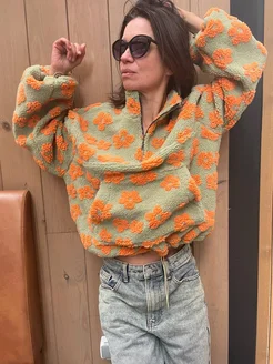 Плюшевый свитер оверсайз на молнии
