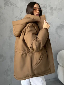 Куртка демисезонная удлиненная с капюшоном осень