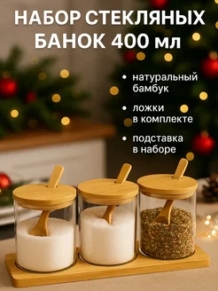 Кухонный набор из 3 банок 400 мл с ложками и подставкой