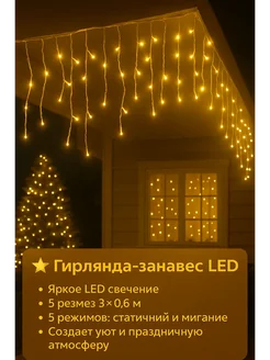 Гирлянда занавес новогодняя желтая светодиодная 3*0,6