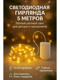 светодиодная гирлянда желтая на батарейках 5 метров