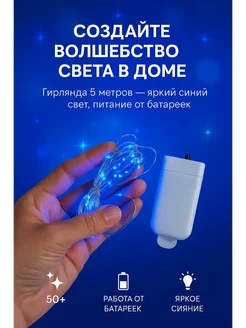 Гирлянда на елку роса 5 м синяя