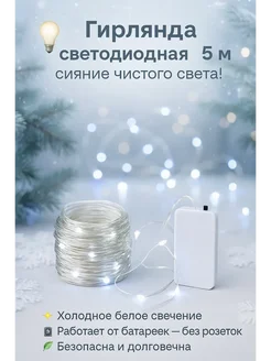 Светодиодная росса гирлянда на батарейках 5 м