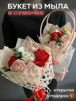 Розы из мыла подарок учителю подруге сумка букет цветов