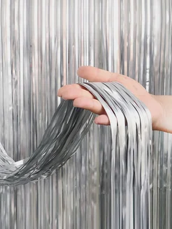 Дождик-занавес для фотозоны цвет серебро 2м на 1м
