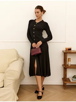Платье трикотажное вечернее с пуговицами лапша с люрексом