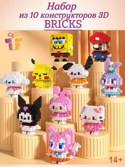 Набор Конструктор 3d из миниблоков. 10 персонажей