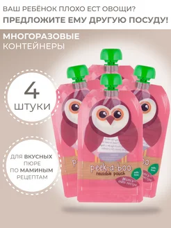 Многоразовые пакеты паучи для детского питания, 150 мл, 4 шт
