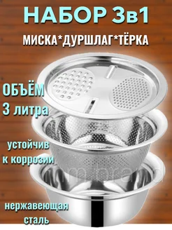 Набор миска для кухни, терка и дуршлаг из нержавеющей стали