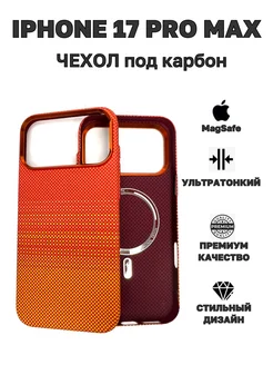 Чехол на Iphone 17 Pro Max. под карбон. Оранжевый неон.Айфон