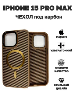 Чехол на Iphone 15 Pro Max Коричневый Карбон с MagSafe