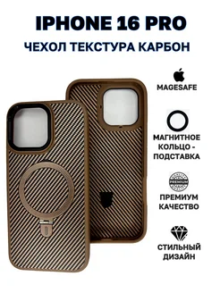 Чехол на Iphone 16 Pro под карбон с подставкой
