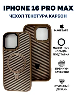 Чехол на Iphone 16 Pro Max под карбон с подставкой