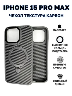 Чехол на Iphone 15 Pro Max Серый Карбон MagSafe с подставкой