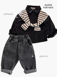 Костюм двойка с теплой рубашкой в клетку для девочки