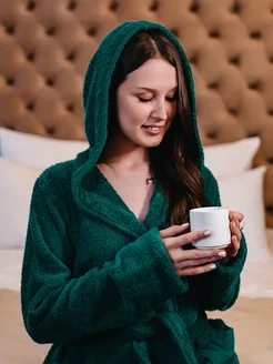 Халат вафельный женский с капюшоном для ванны и бани хлопок