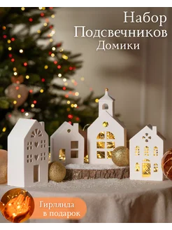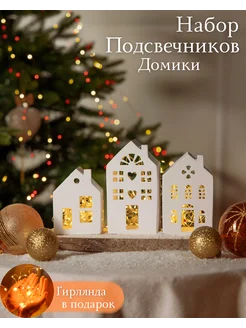 Подсвечники Домики 3 шт новогодний подарочный набор