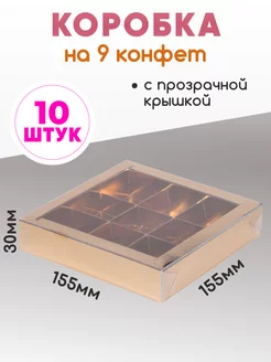 Картонная коробка для конфет 9 ячеек с разделителями