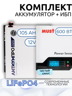 Комплект ИБП MUST 0612PRO с аккумулятором LiFEPO4 105Ah 12V