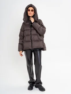 Пуховик с капюшоном укороченный стеганый пух перо зима