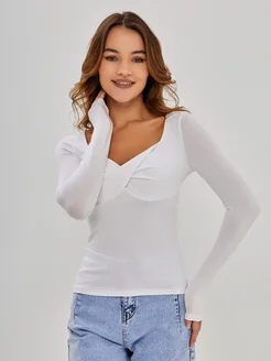 Лонгслив облегающий с длинным рукавом и вырезом