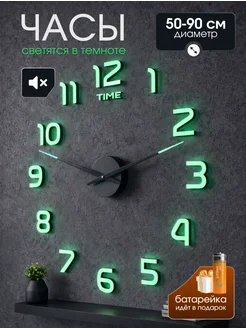 Часы настенные интерьерные светящиеся в темноте большие 3D