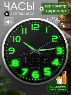 Часы настенные бесшумные светящиеся в темноте 30 см на кухню