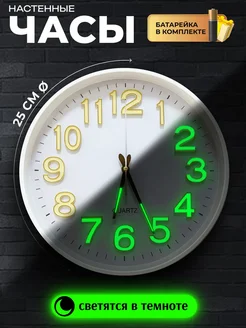 Часы настенные бесшумные светящиеся в темноте 25 см на кухню