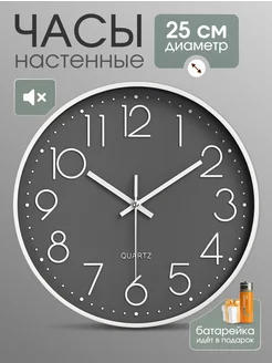 Часы настенные интерьерные круглые бесшумные для кухни 25 см