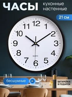 Часы настенные интерьерные круглые бесшумные для кухни 21 см