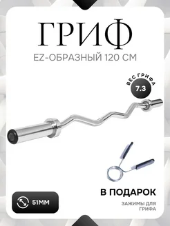 Гриф для штанги EZ-образный L 120 D 51 + зажимы