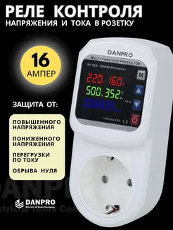 Реле контроля напряжения и тока в розетку 16А