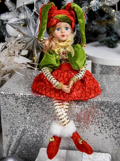Новогодняя кукла интерьерная эльф под елку на ножках
