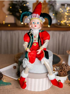 Новогодняя интерьерная кукла Арлекин эльф под елку