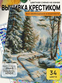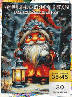 Вышивка крестиком набор со схемой на канве Зимний Гном