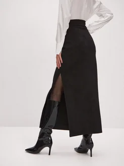 Длинная юбка офисная макси с разрезом