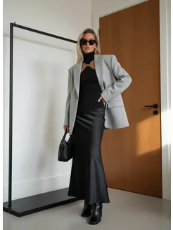Длинная юбка рыбка в пол атласная