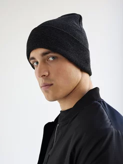Шапка мужская зимняя осенняя вязаная бини с отворотом