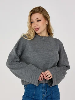 Свитер женский оверсайз вязаный укороченный теплый мягкий