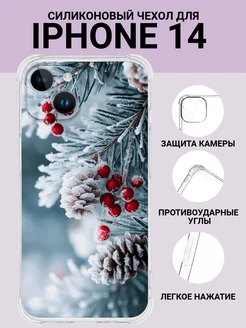 Новогодний чехол на телефон iPhone 14 с принтом силиконовый