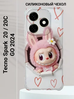 Чехол на Tecno Spark 20 прозрачный с принтом Labubu