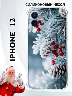 Новогодний чехол на iphone 12 прозрачный с принтом
