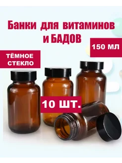 Набор косметических баночек из темного стекла 100мл 10 шт