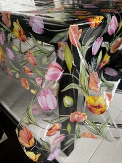 Скатерть клеенка прозрачная на стол тюльпаны 100х135