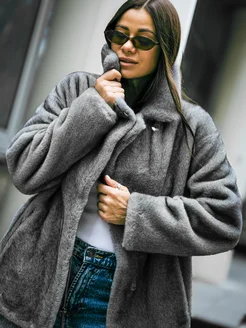 Дубленка экошуба двухсторонняя под норку с капюшоном