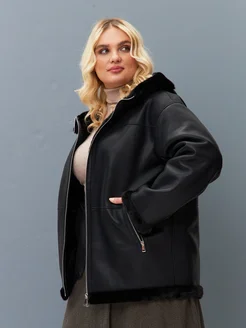 Дубленка укороченная зимняя с капюшоном