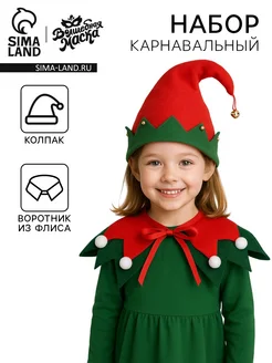 Карнавальный костюм "Новогодний эльф" с колпаком и воротнико