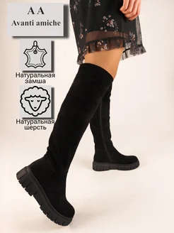 Сапоги ботфорты женские зимние натуральная замша на каблуке